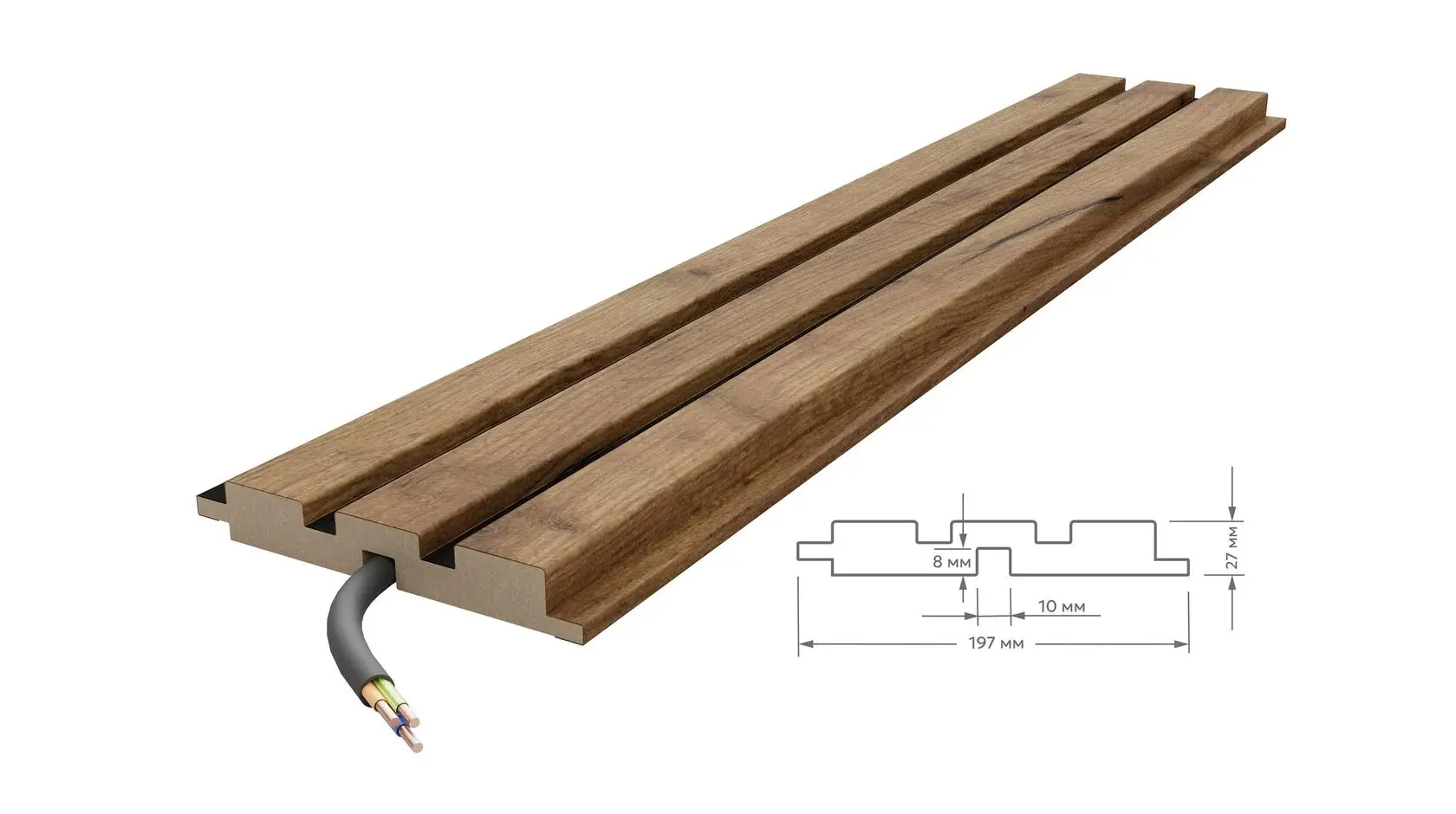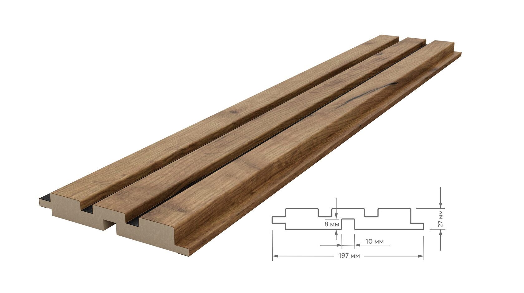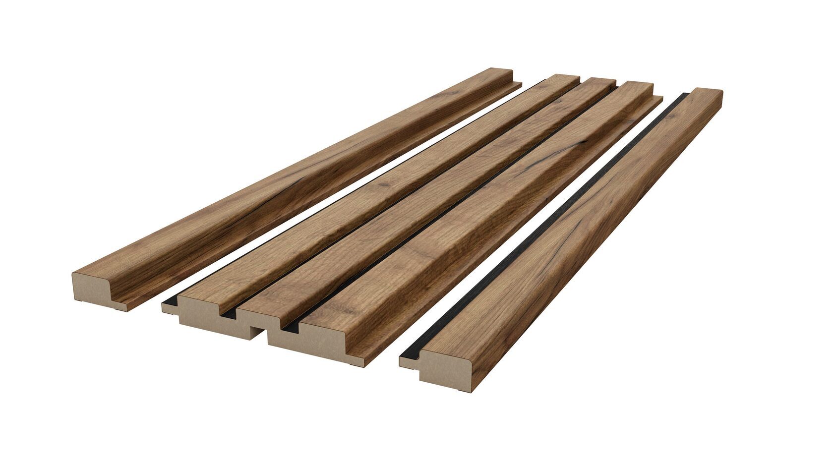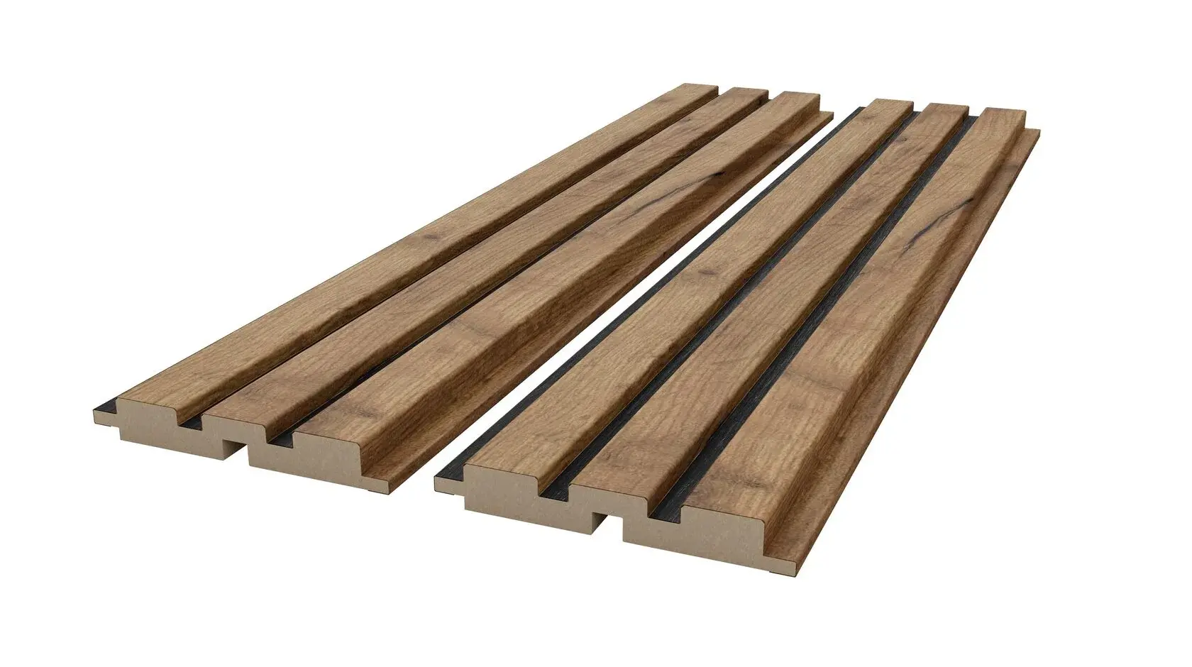 Двухцветная реечная стеновая панель МДФ, Дуб Крафт Табачный/Черный, 2800*116*16