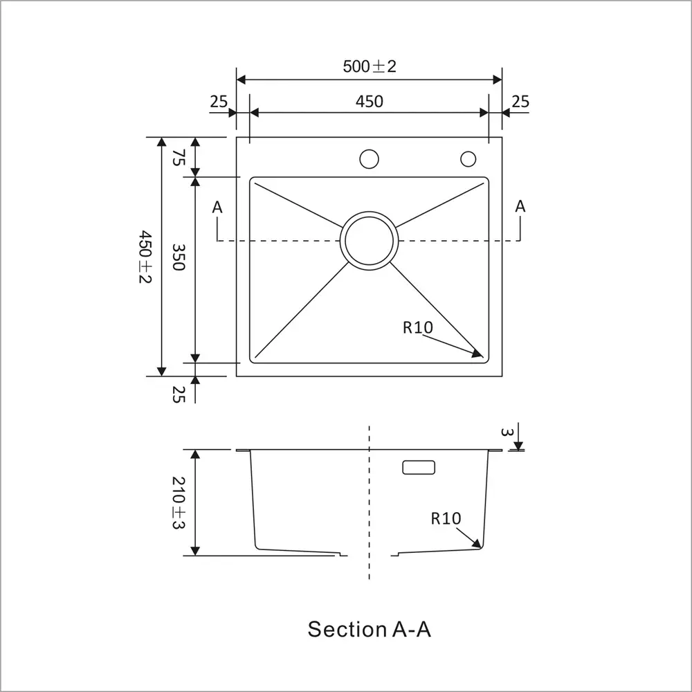 Толщина металла (мм): 0.8 (чаша), 3 (установочный борт)